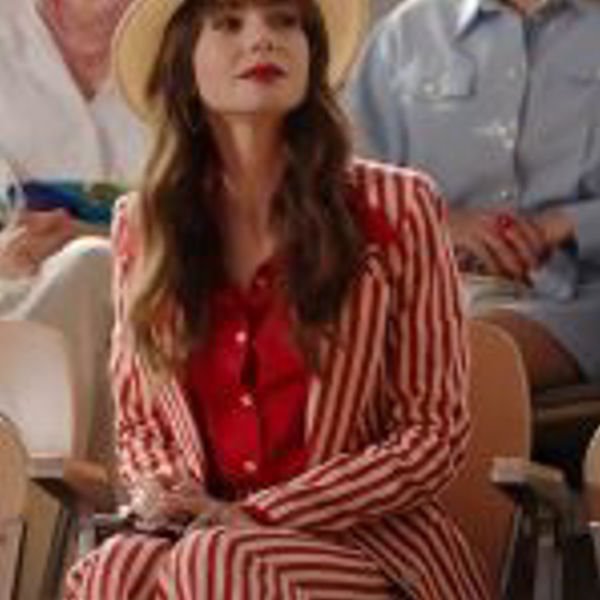 Channel Emily Cooper’s iconic Parisian style with the Emily in Paris Lily Collins Striped Suit, available at American Leather Jackets. A chic blazer and trouser set crafted for fashion lovers and fans.