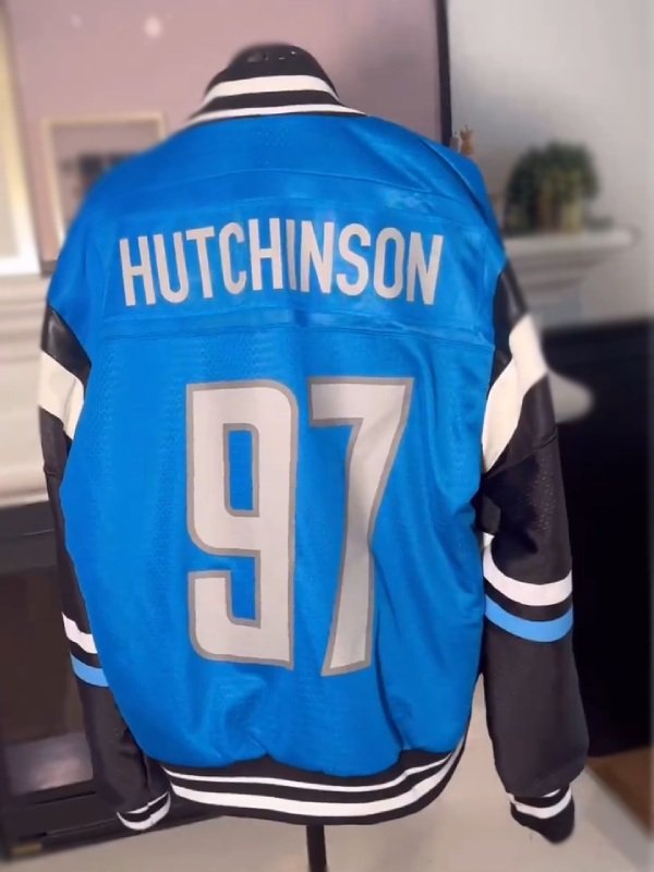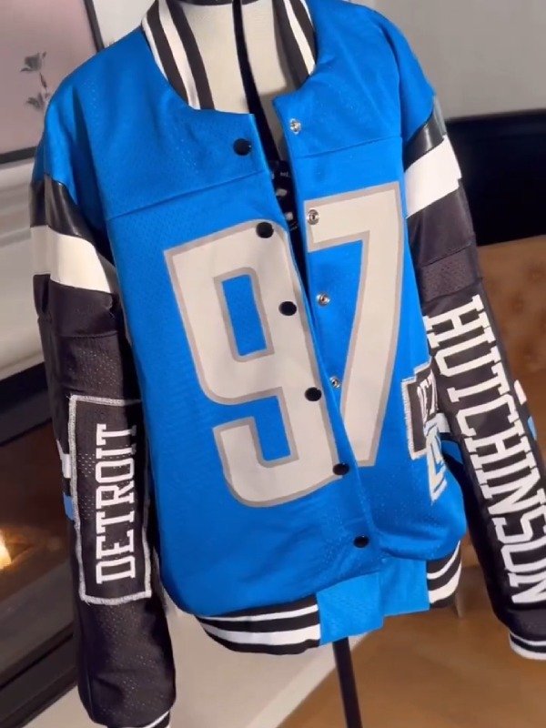 Show off team spirit with star power in the Taylor Lautner Lions Jacket. Inspired by the viral look designed by Kristin Juszczyk, this Detroit Lions jacket fuses cozy warmth with sleek style. Worn by Taylor Lautner, it blends fandom and fashion, making it a standout outerwear choice for chilly game days or Lions-themed fits. With its premium build and official team vibes, this Kristin Juszczyk Detroit Lions Jacket is the ultimate gear for fans and trendsetters alike.