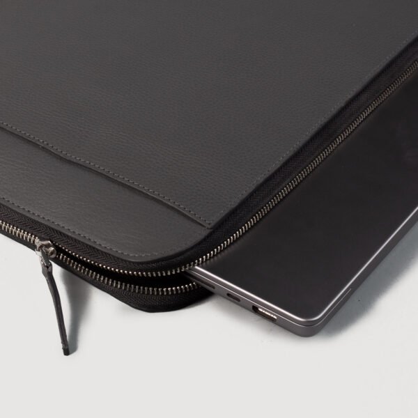 The Baxter Grey Leather Laptop Sleeve is an essential accessory for anyone looking to combine elegance and practicality in their daily routine.