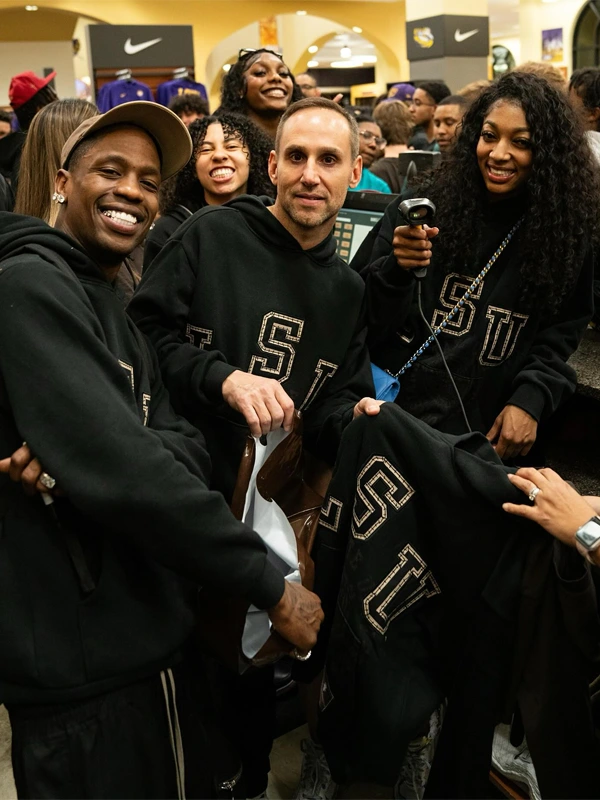 It combines LSU team pride with Travis Scott’s signature streetwear influence for a bold and trendy look.